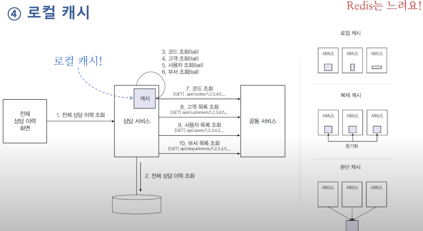 Redis보다 약 20배 빠르고 동기화도 필요없기 때문에 로컬캐시를 권장한다