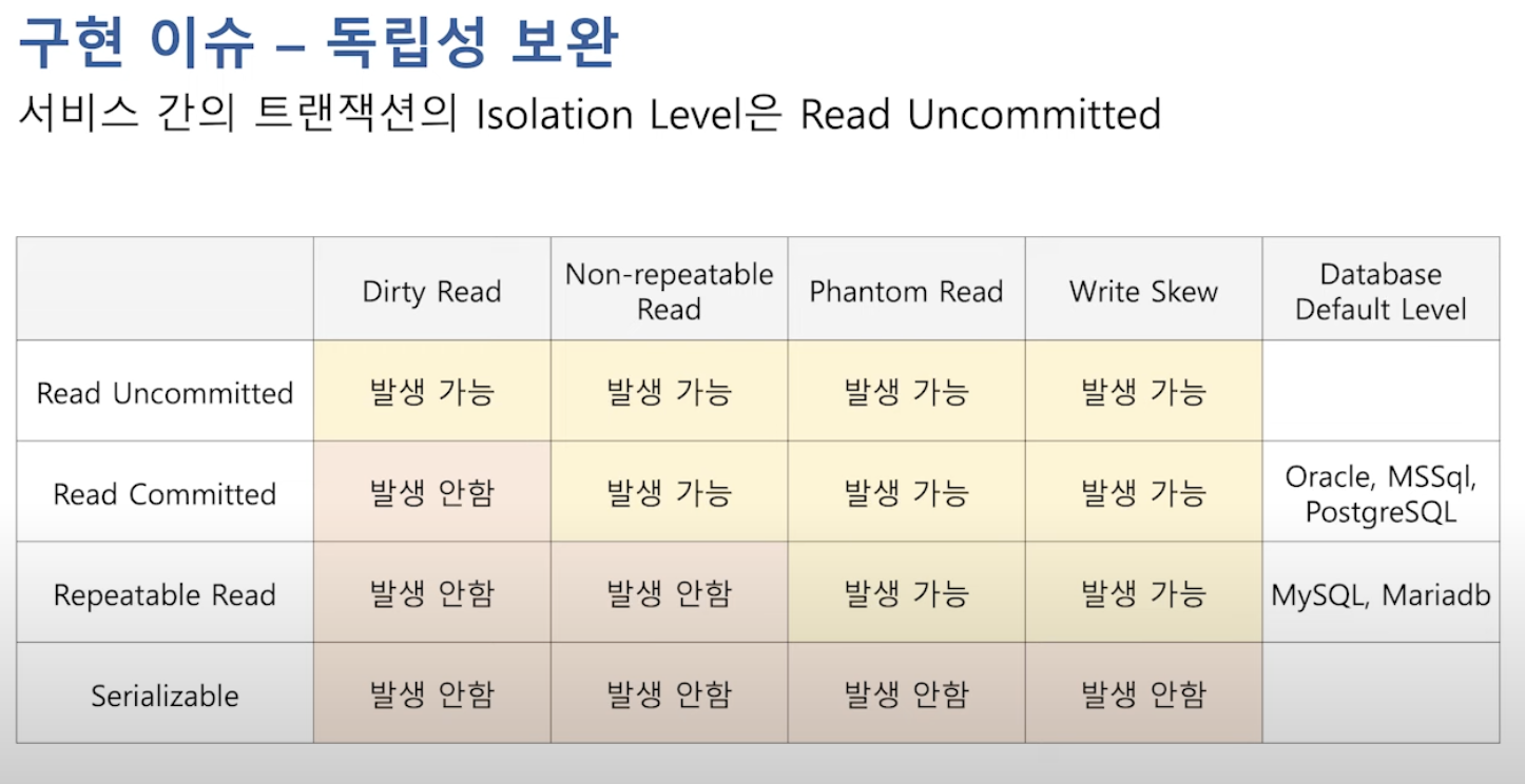 MSA 환경에서 쓰기 작업시 트랜잭션중 원자성, 독립성 보장이 되지 않는다
