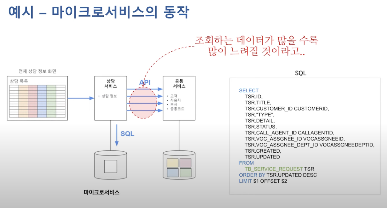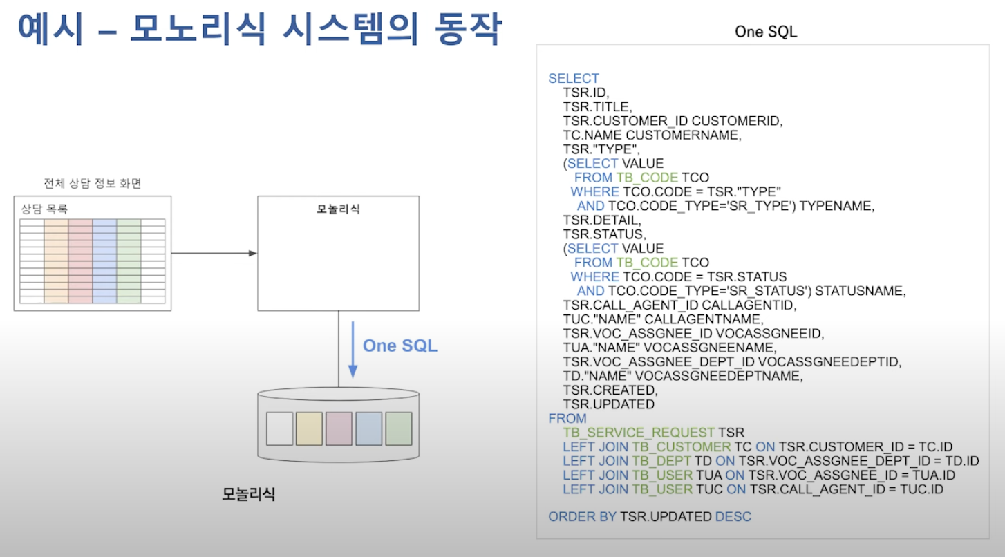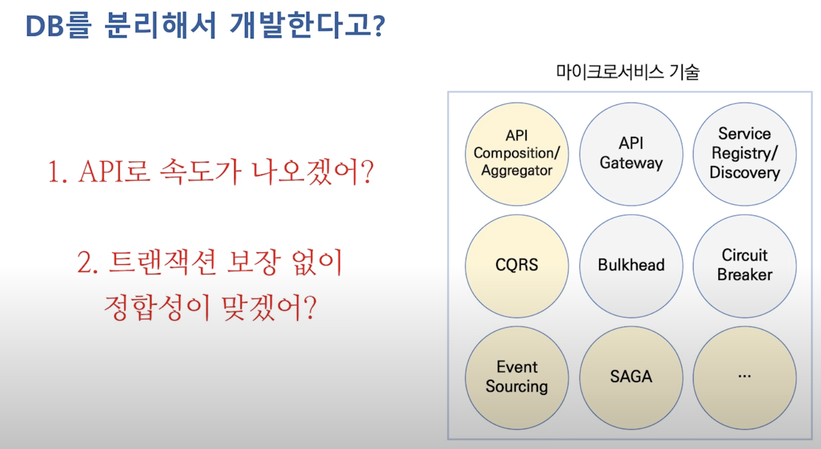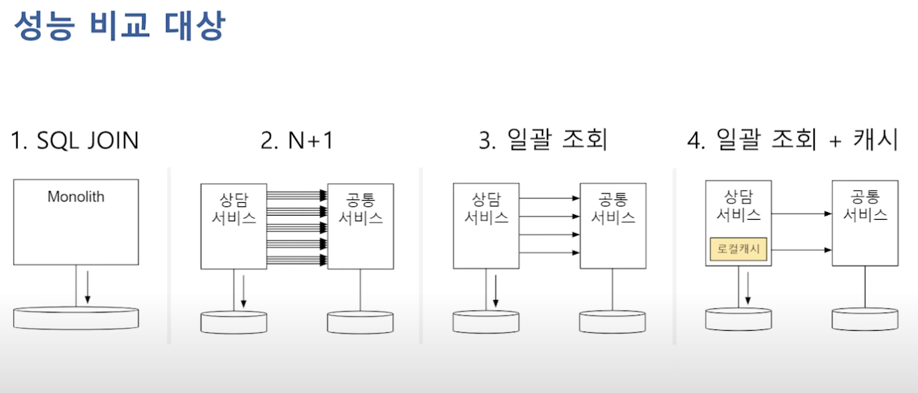 모놀리식의 경우 여러 테이블을 조인해 한방 쿼리로 조회 하기 때문에 문제될게 없다