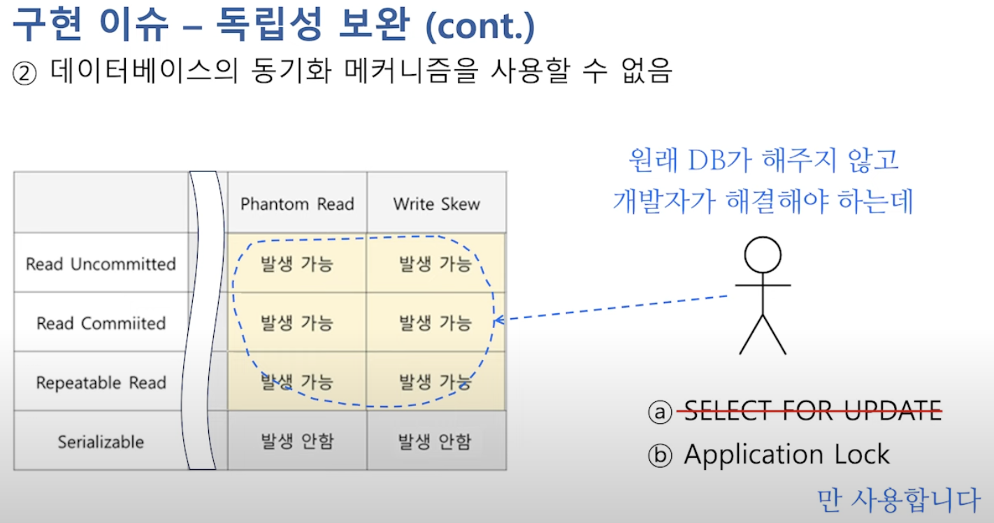 일반적으로 isolation 레벨을 read commited 나 reapeatabled 수준으로 맞추는데