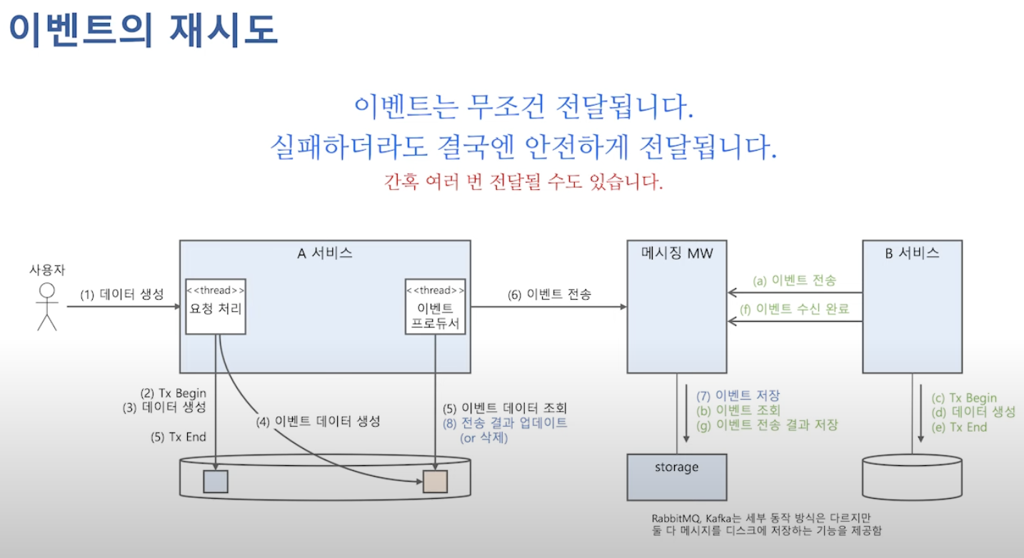 다만 이벤트는 최소 1회 보장이라 여러번 실행되도 같은 결과가 나오도록 구현해야한다